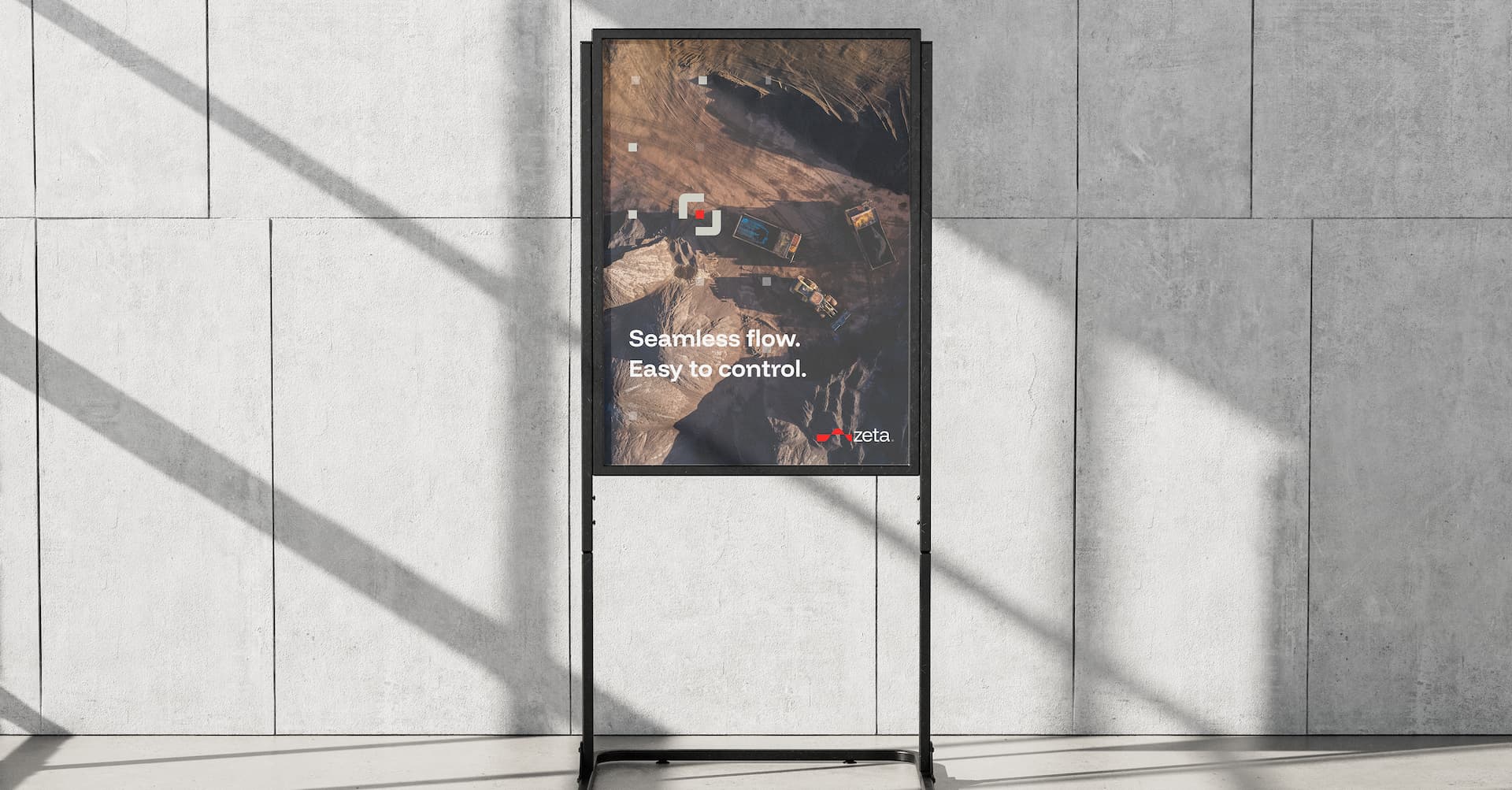 We positioned Zeta as the integrated solution - on-the-ground and in-the-cloud - that gives commodity traders, mining and logistics operators control over their bulk supply chain. The brand promise "Deliver as Promised" establishes unwavering reliability - the foundation of credibility in high-stakes operations. In an industry plagued by chaos and inefficiency, control became the emotional core of everything we built. The brand's distinctive "flow" icon captures Zeta's ability to seamlessly move commodities through both physical and digital systems. A metals-and-minerals color palette grounds the identity in a bold, industrial aesthetic - raw yet refined. Aerial photography conveys a commanding perspective and comprehensive oversight, while structured, dynamic graphic compositions reinforce the ideas of precision and control. Every element works together to signal mastery in a chaotic landscape.